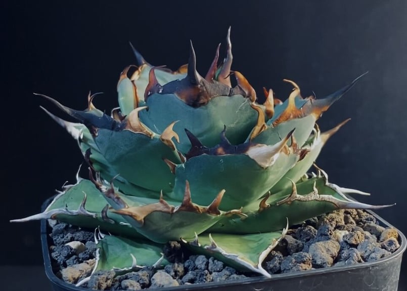 - 観葉植物 > アガベ > アガベ チタノタ HADES(選抜株) ハデス 八角形鉢 タグ付 アガベ・チタノタ (黒帝斯)ハデス_中-007|agave titanota hades |